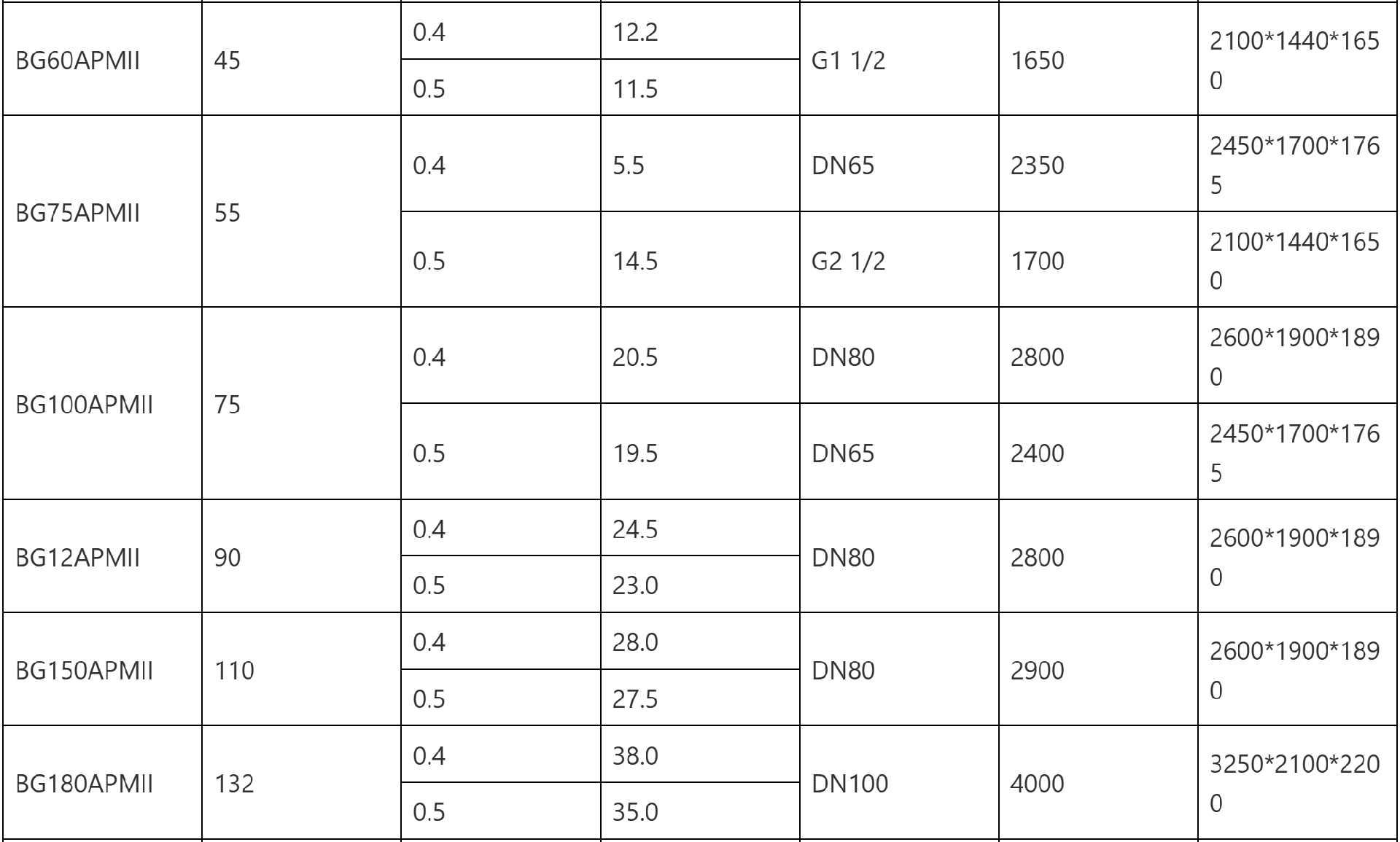 产品描述:经久耐用,技术成熟,产品稳定,超高性价比低压双级压缩永磁变频螺杆空压机技术参数/Technical parameter型号Model功率Power(kw)排气压力Pressure(Mpa)容积流量Volume flow(m3/min)出口尺寸Pipe Diameter机组重量Wei···